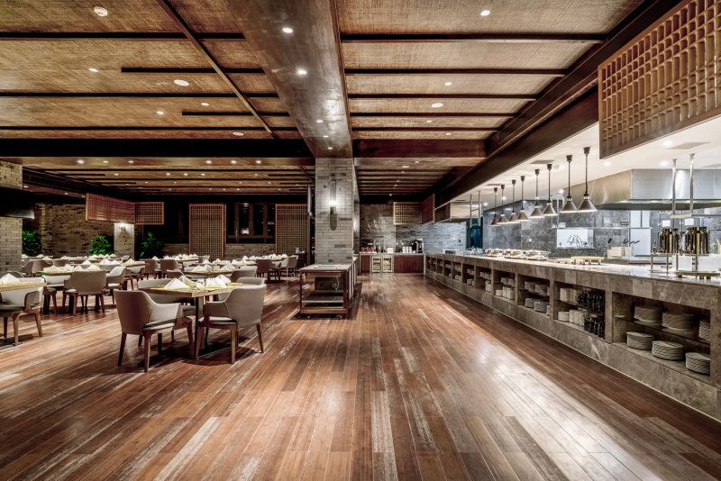 戏水台大堂吧气氛优雅温馨,商务休憩两相宜。香浓醇正的咖啡,回味悠长的好茶、精心调配的鸡尾酒以及各款精美小点,让您在品味美食之余更感受别样的浪漫风情。