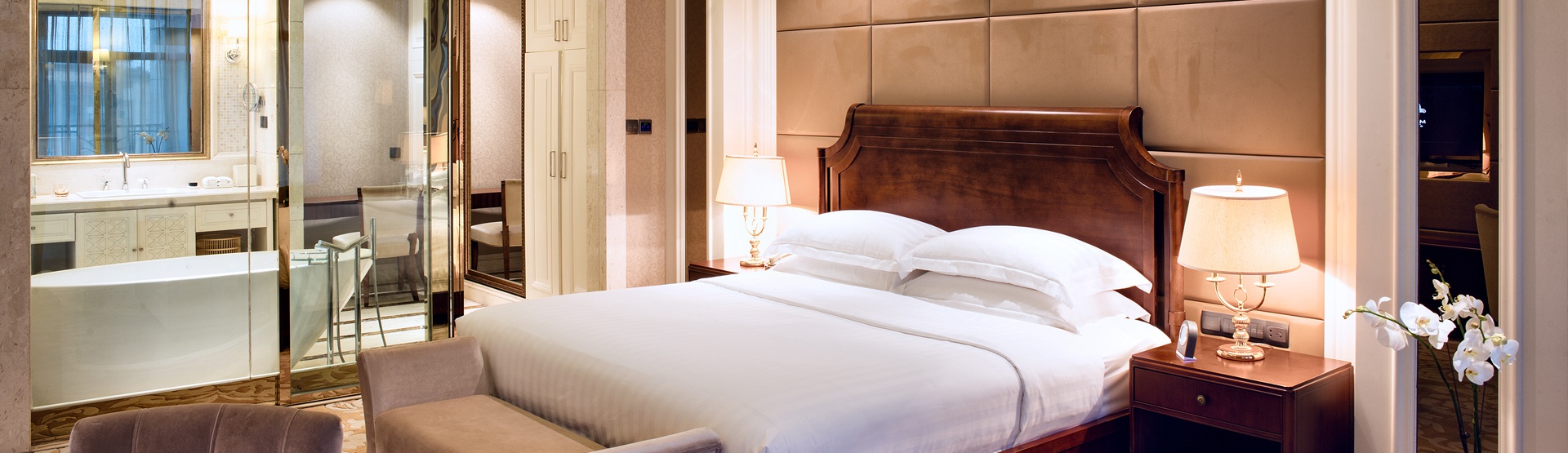 饭店拥有奢华的大使套房1间,城景,面积134平米,露天开放式阳台34平方米。内设1张2.2米宽床,42寸液晶电视,接收多个国内外卫星电视频道,24小时客房服务,室内保险箱,迷你酒吧,开夜床服务,办公桌,无线网络Wi-Fi,复式结构,可享受免费行政酒廊早餐、全天茶饮免费,退房时间可延至下午4时、免费使用行政楼层会议室2个小时,免费享受17:00-19:00点的欢乐时光,中英文报纸,每天1件湿洗衬衣,免费接收传真,赠送水果。欧舒丹洗漱用品,增设咖啡机、Apple播放器、DVD播放器。